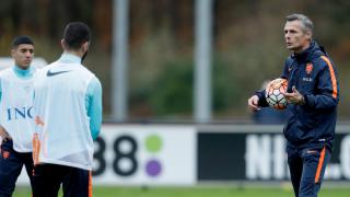 Kees van Wonderen legt de training even stil om met zijn spelers te praten. - Foto: KNVB Media