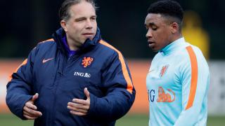 Art Langeler geeft als coach van Jong Oranje aanwijzingen aan Steven Bergwijn. - Foto: KNVB Media