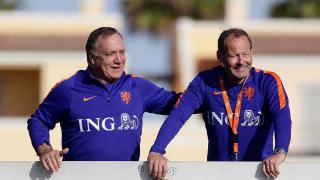 Op het trainingsveld naast bondscoach Danny Blind stond een oude bekende: Dick Advocaat. - Foto: KNVB Media