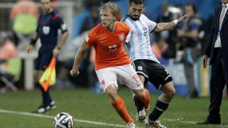 Dirk Kuyt in actie tegen Argentinië tijdens de halve finale van het WK 2014.