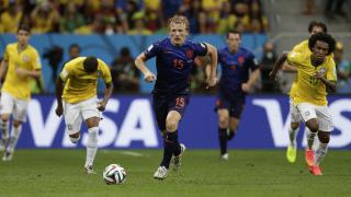 Dirk Kuyt tijdens de WK-troostfinale tegen thuisland Brazilië in 2014.